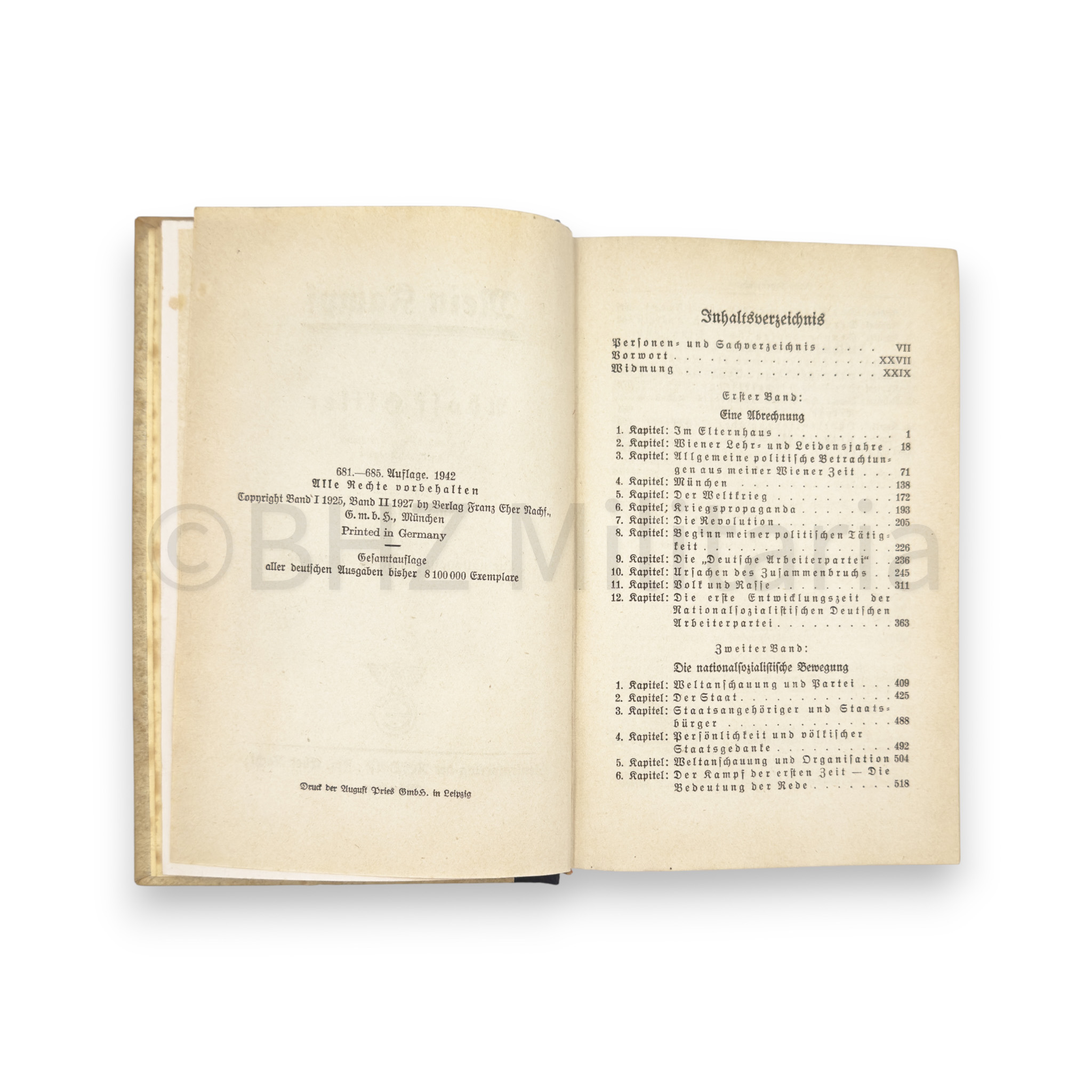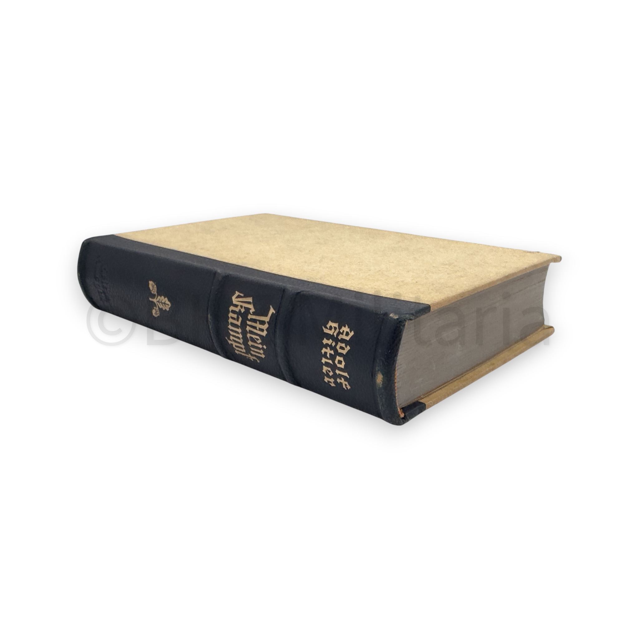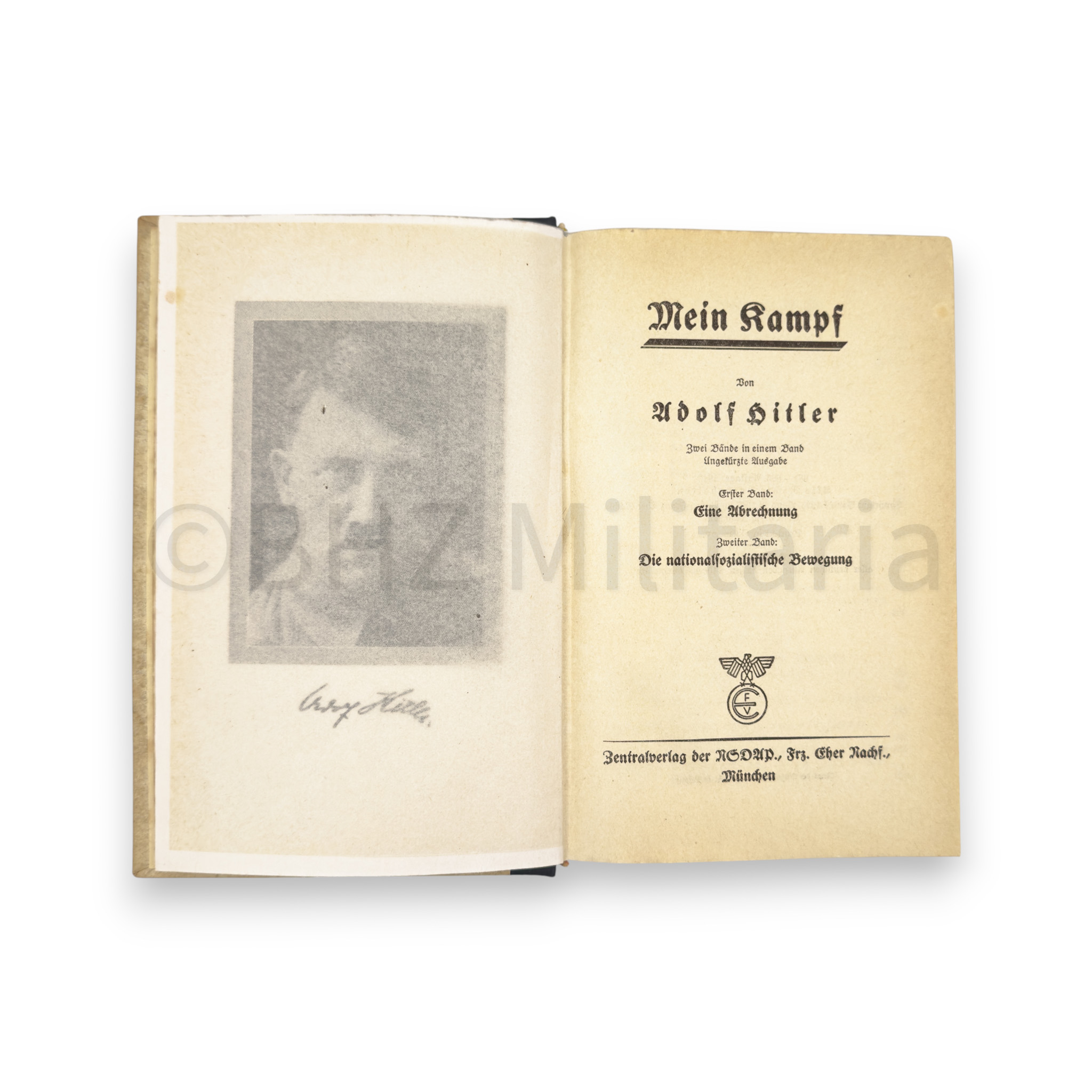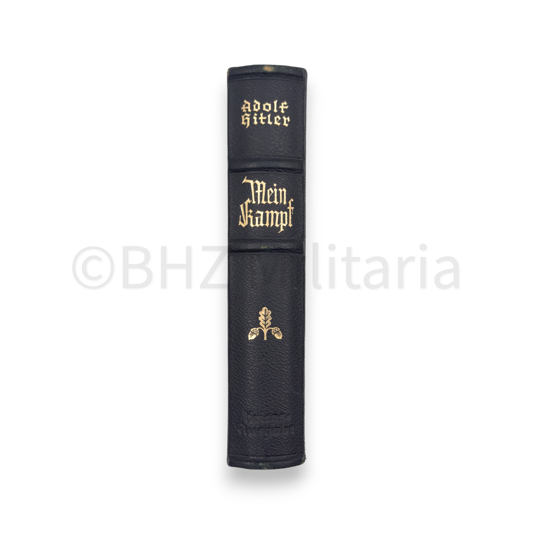 Huwelijkseditie van Mein Kampf, uitgereikt bij een huwelijk op 28 augustus 1943, in de Gemeinde Langenfeld Rheinland met widmung van de Bürgermeister.