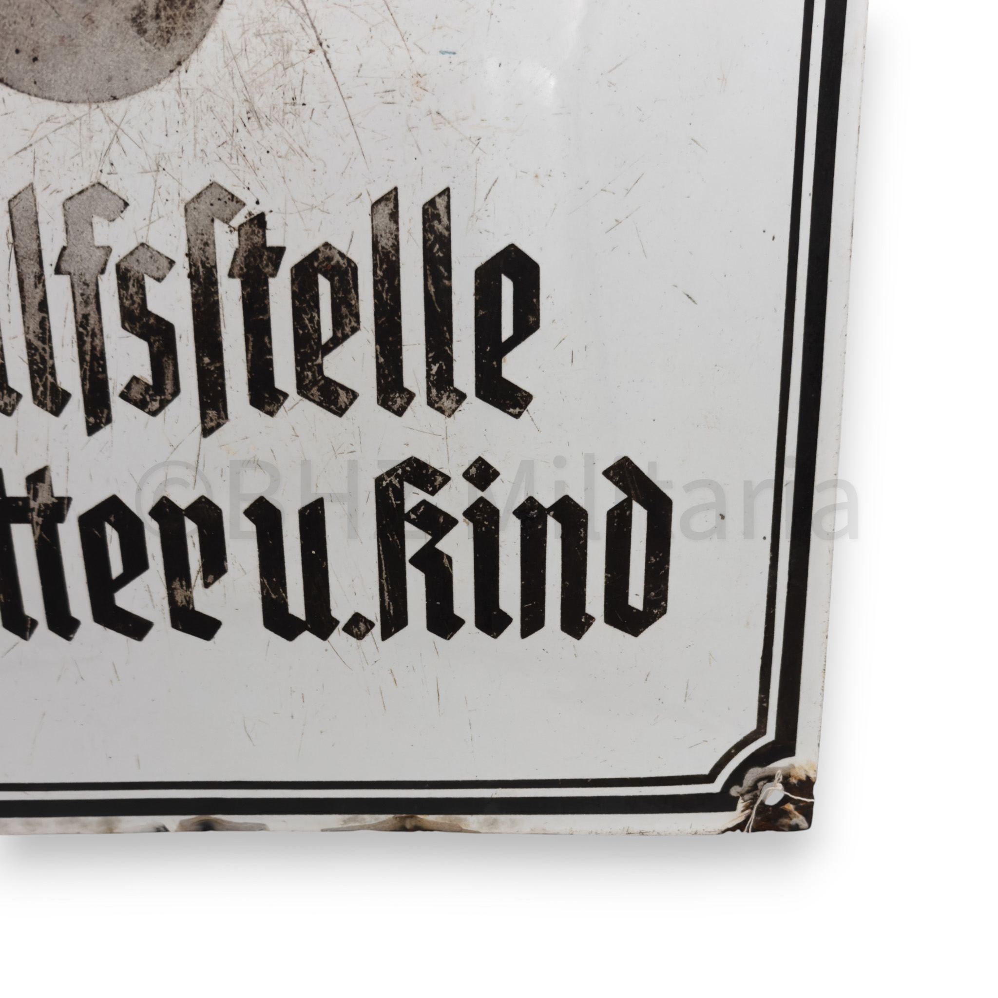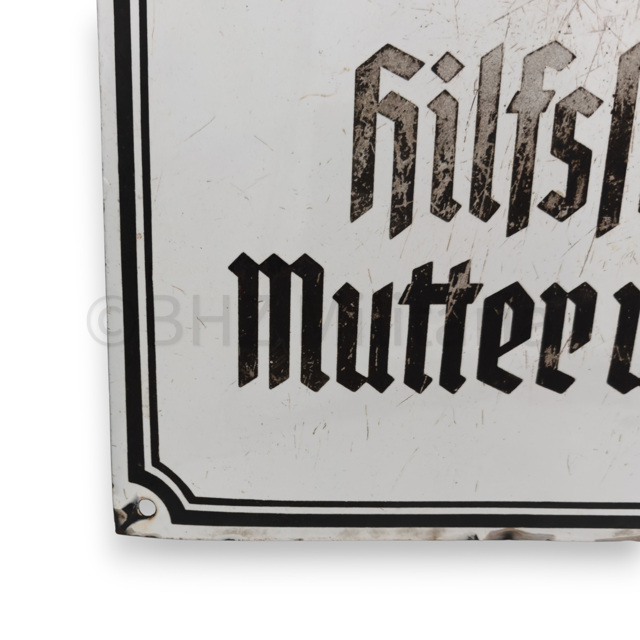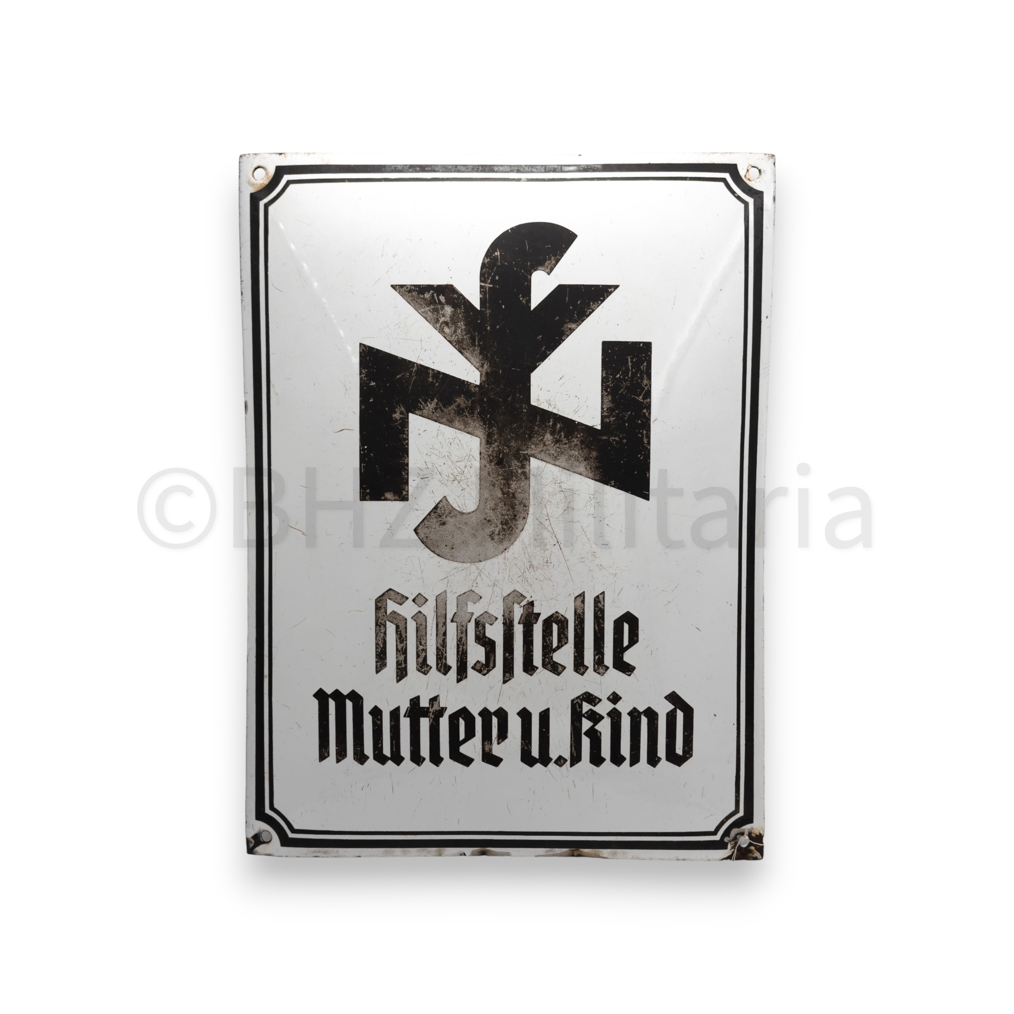 Origineel emaille gevelbord van de NSV (Nationaal Socialistische Volkswohlfahrt) Hilfstelle Mutter u. Kind (steunpunt voor moeder en kind).