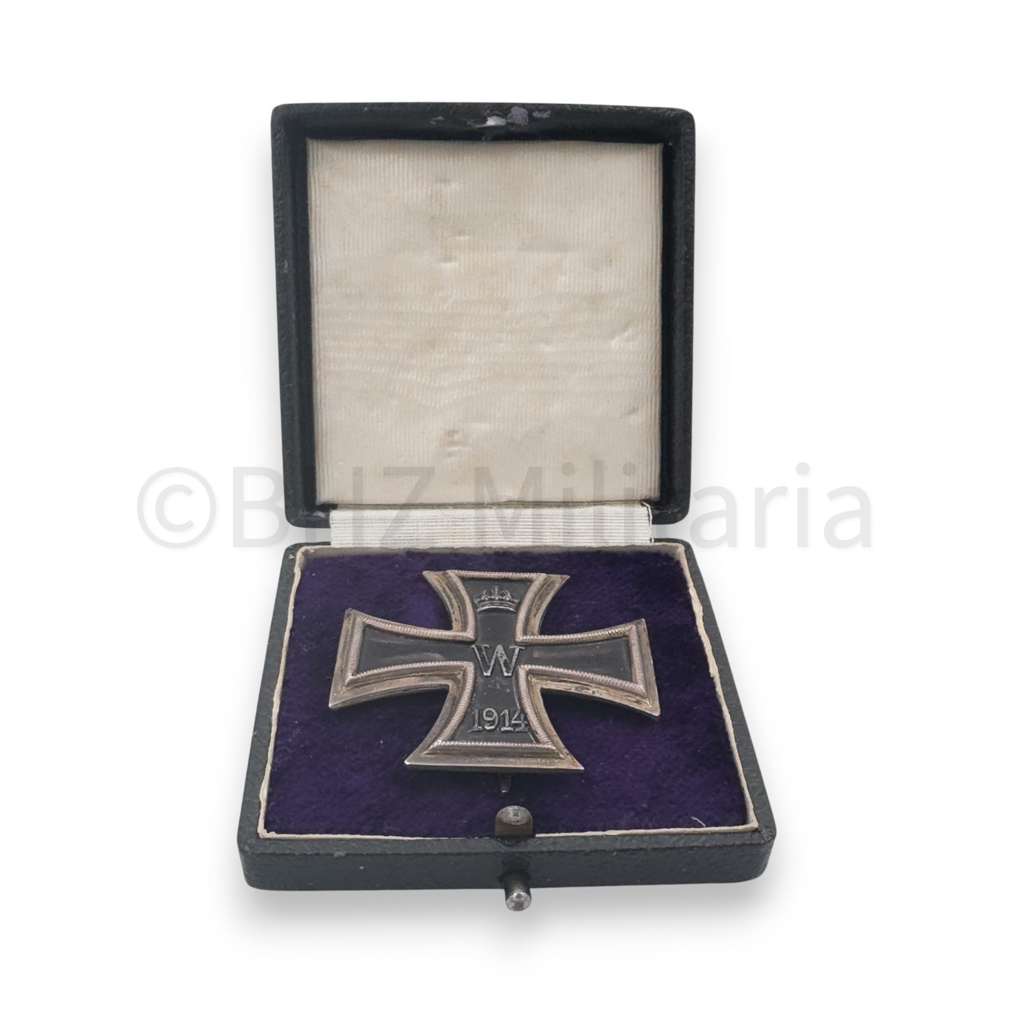 Fraai IJzeren Kruis 1e Klasse 1914 keurig gemarkeerd met K.O. van het Königliches Münzamt Orden uit Berlijn. Het doosje heeft een inlay van paars fluweel en is een mooie conditie.